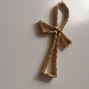 Egyptian Ankh Cross Gold-tone Vintage 4" Pendant Egypt Jewelry Finding Outline Textured
