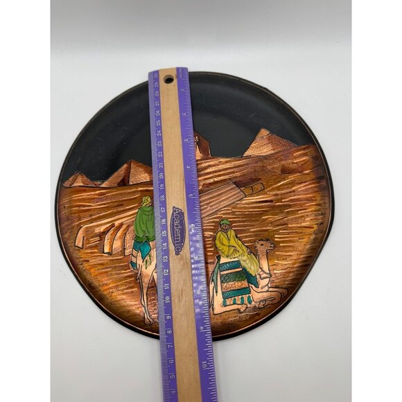 Egyptian Brass Decor Plate Spinx Pyramids Camels Black Gold Metal Wall Decor
