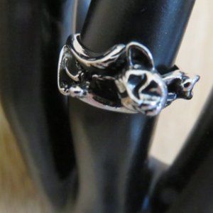 Egyptian Oriental Style Curled CAT Ring Silver Tone Alloy Size 6.5 (F10)
