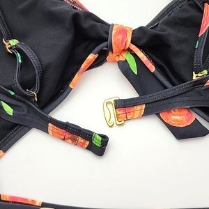 Eidon SGS Sports One Piece Cut Out Bathing Suit Black Peaches Print Size Small