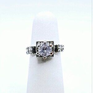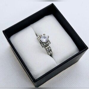 Eiffel Tower 4 Claw Zirconia Silver Tone Anniversary/ Engagement Ring