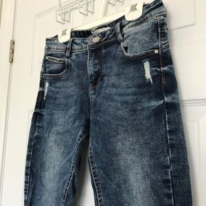 EightyTwo Denim Acid Wash Skinny Ankle Jeans Size 5 Pockets Dark Blue Distressed