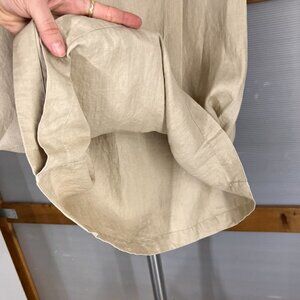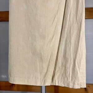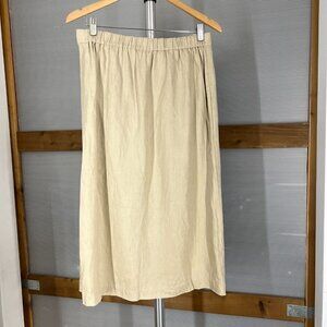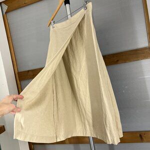 Eileen Fischer Tan 100% Linen A-Line Faux Wrap Midi Skirt Sz S