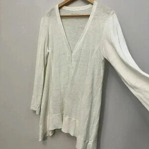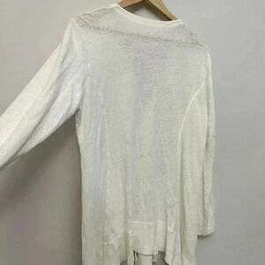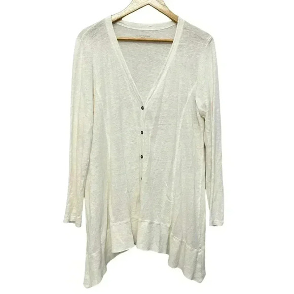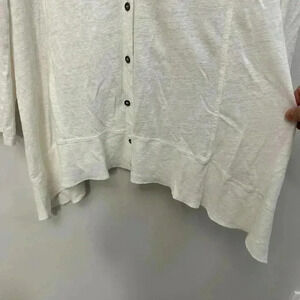 Eileen Fisher 100% Linen Button Front V-Neck Cardigan White Women's Medium