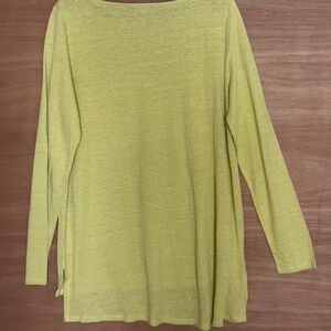 Eileen Fisher 100% organic linen yellow long sleeve tunic sz M boat neck hi low