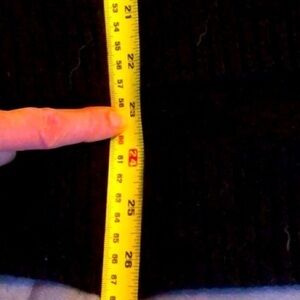 Longer in the back. Fits a S/M. Loose and boxy fit