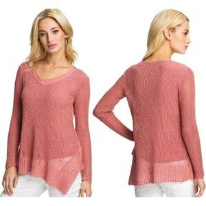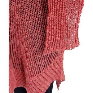 Eileen Fisher Airy Linen Grain Rib V Neck Sweater Size L Coral Tunic Top