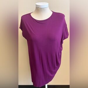 Eileen Fisher Asymmetrical Modern Short Sleeve Stretchy Purple Dress size Small