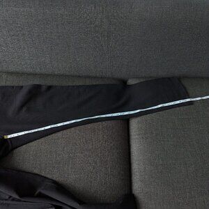 These pants are a perfect for work thicker stretch material with 100% leather lining around the vertical front pockets and back slit pocket. These have a straight leg with a nice long inseam that works well with heels.