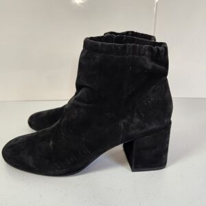 Eileen Fisher Black Suede Leather Hollis Ankle Boot Booties Shoes Chunky Heel