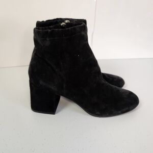 Eileen Fisher Black Suede Leather Hollis Ankle Boot Booties Shoes Chunky Heel 9