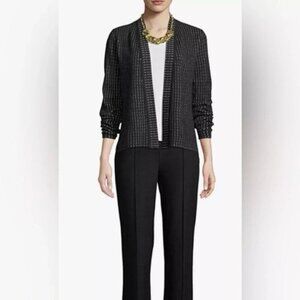 Eileen Fisher Black White Strip Silk Organic Cotton Open Front Cardigan Size 3X