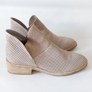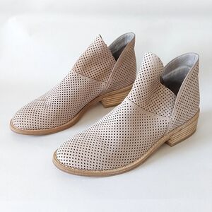 Eileen Fisher Bootie Size 7 Perforated Nubuck Leather Neutral Ankle Stacked Heel