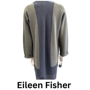 Eileen Fisher Cardigan Sweater Pockets Collarless Merino Wool Dark Green XS