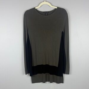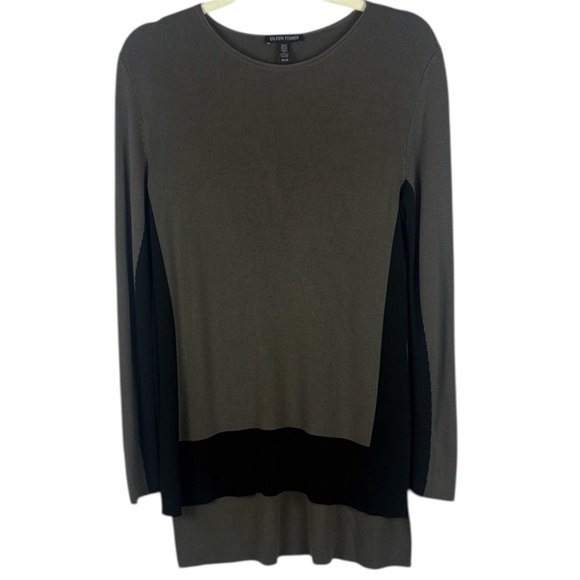 Eileen Fisher Classy Neutral Minimalist Ribbed Black Gray Knit Top Size XS