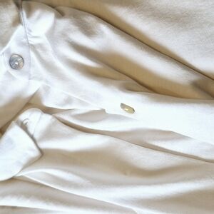 Elegant white 100% organic stretchy cotton with mother of pearl buttons tunic blouse by Eileen Fisher . size xl