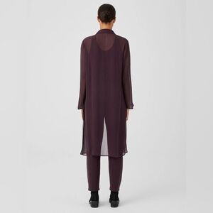 Eileen Fisher Crinkled Sheer Silk Collar Jacket/ Duster in Cassis | Size M