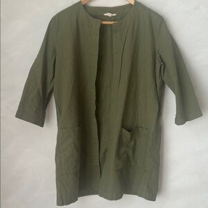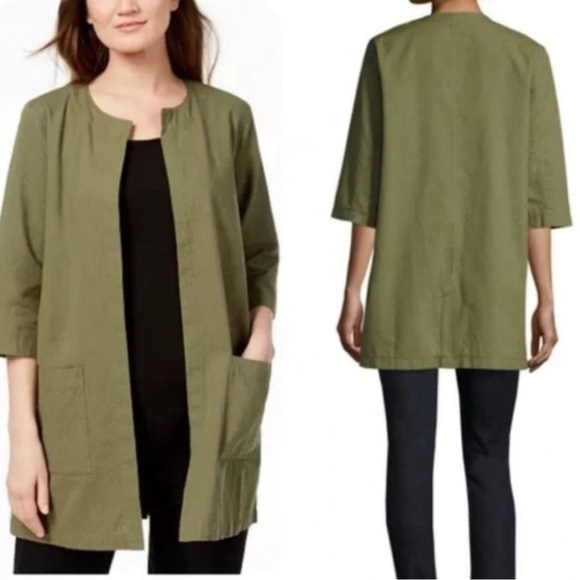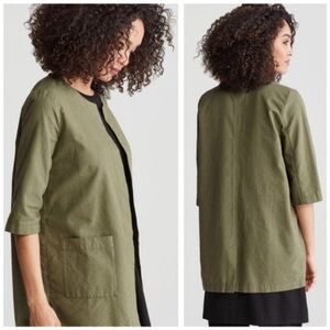 Eileen Fisher Cross-Dyed Organic Cotton Jacket in Olive Green shacket