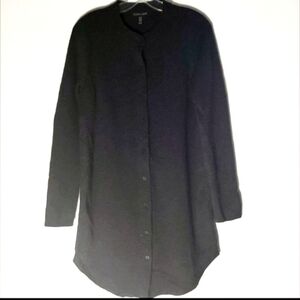 Eileen Fisher Italian 100% Merino Sz Xxs Yarn Long High&Low Hem Charcoal Gray