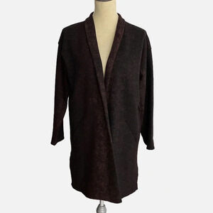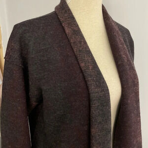 Eileen Fisher Kimono Coat Cardigan Purple Brown Raw Seams Slit Pockets XXS/XS