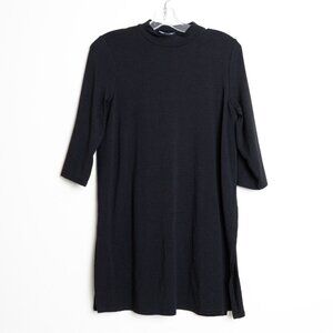 Eileen Fisher Mock Neck Long Sleeve Tunic Black Top Small Petite Lyocell