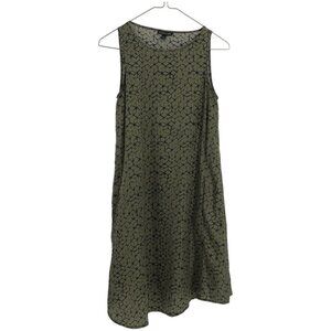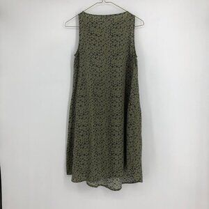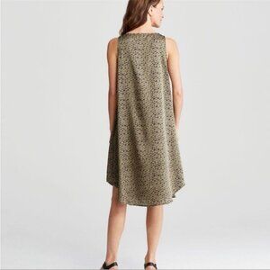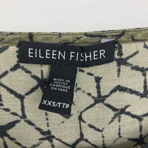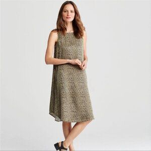 Eileen Fisher Mosaic Print Olive green Silk cotton blend flowy midi dress XXS