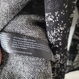 Eileen Fisher open front knit cardigan. Colour: Black/White. SIZE: XS. (armpit to armpit measures 18") Textured cardigan features long sleeves and a collarless round neck. An ultimate layering piece. Fabric Content: 87% Organic Linen,13% Nylon. The cardigan is in very good pre-owned condition. Minor overall wear. No stains or rips. Retail: $218 USD