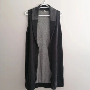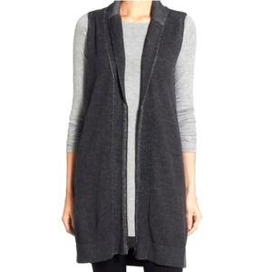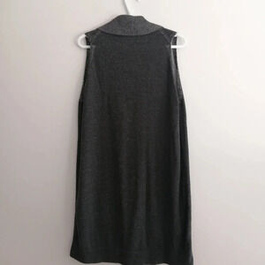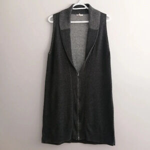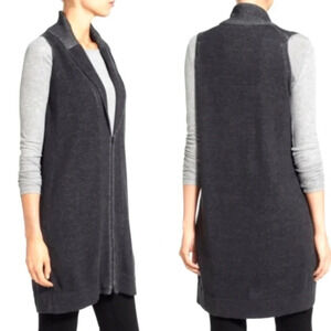 Eileen Fisher Organic Cotton Plaited Longline Zip-Front Gray Sweater Vest Medium