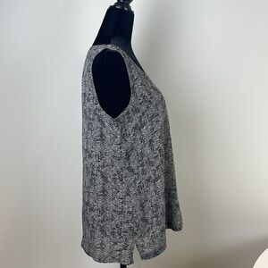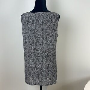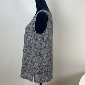 Eileen Fisher Scoop Neck Silk Shell Ash Gray Black Charcoal Printed Top