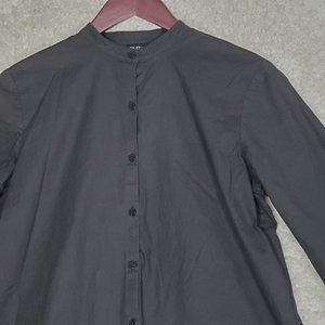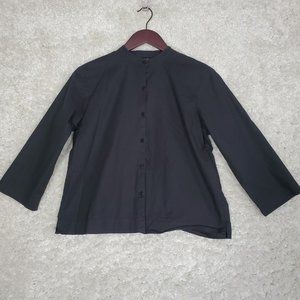 Eileen Fisher Shirt Womens Medium Petite PM Black Button Front Long Sleeve