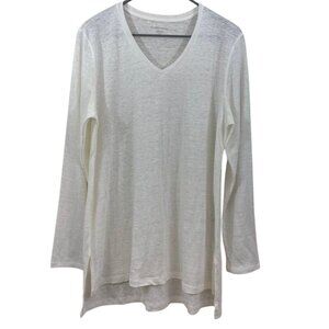 Eileen Fisher Off-White Linen V-Neck Top - Size Small (but Eileen Fisher runs larger)