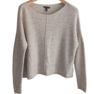 This is a relaxed, boxy fit lightweight speckled beige and grey3 cotton-wool sweater by Eileen Fisher.
