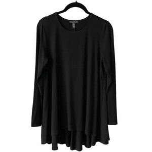 Eileen Fisher Hi Low Stretchy Long Sleeve Blouse Round Neck Casual Black Small : Used and in good used condition