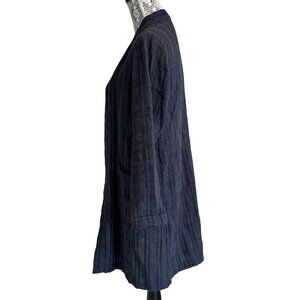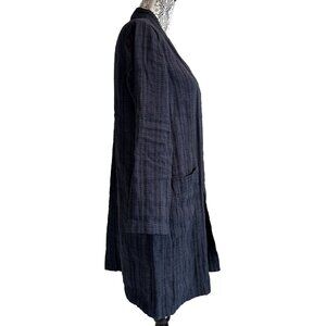 Eileen Fisher Textured Organic Linen Long Cardigan Jacket Sz Petite S Indigo