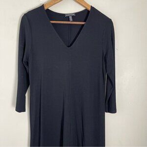 Eileen Fisher V Neck 3/4 Sleeve Asymmetrical Hem Shift Dress Sz Small Black Soft