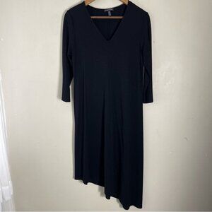 Eileen Fisher V Neck 3/4 Sleeve Asymmetrical Hem Shift Dress Sz Small BLack Soft