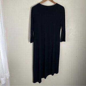 Eileen Fisher V Neck 3/4 Sleeve Asymmetrical Hem Shift Dress Sz Small Black Soft