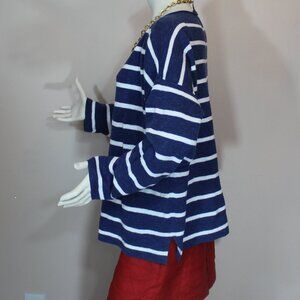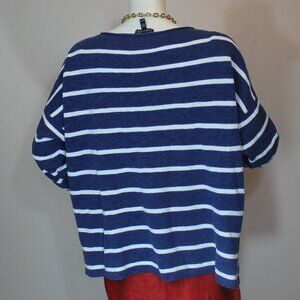 Eileen Fisher Woman Blue White Organic Linen Blend Striped Boxy Long Sleeve XL