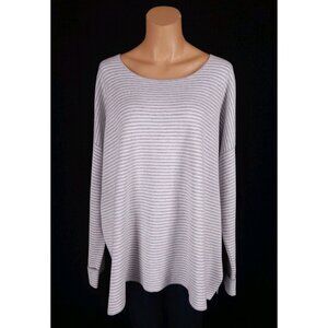 Eileen Fisher Woman Organic Cotton & Silk Striped Sweater Plus 2X Gray $198