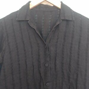 Eileen Fisher black 100% Irish linen button down sheer stripes