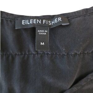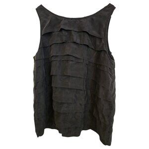 Eileen Fisher black 100% Silk Tiered Ruffle sleeveless Top Size medium