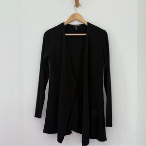 Eileen Fisher black silk cotton open front draped cardigan - Medium