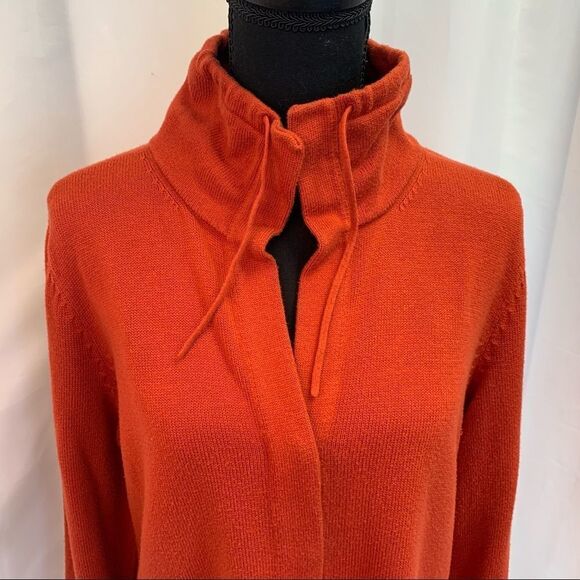 Eileen Fisher burnt orange organic cotton Button Front high neck sweater size M