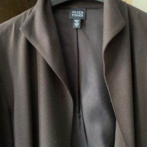 A beautiful, rich brown colour jacket in 100% wool by Eileen Fisher with side pockets. Worn once, like new!