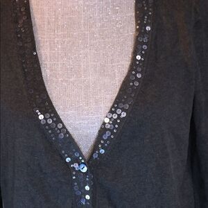 Eileen Fisher olive Green Embellished Button Front Cardigan Lairs Size Womens M