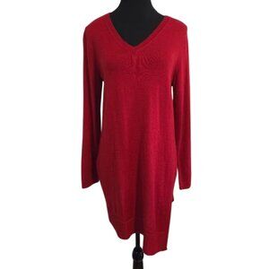 Eileen Fisher red long sleeve V-neck tunic dress size US XS