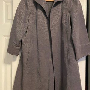 Open front, stylish spring Eileen Fisher jacket. Slight sheen, 72% cotton/23% nylon Italian fabric. Very dressy. Holds its shape for a formal look. Perfect condition. 32 inches, 3/4 sleeve.