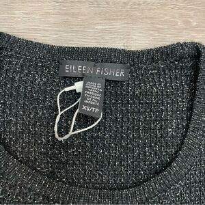 Eileen Fisher Wool Black Metallic Lightweight Crew Neck Sweater Size XS