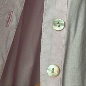 Soft and elegant light pink robe. Features button-down front and delicate lace trim. Ideal for relaxation.