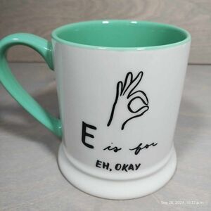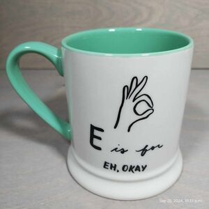 E is for Eh, okay. Indigo mug E names okay symbol. Bright teal